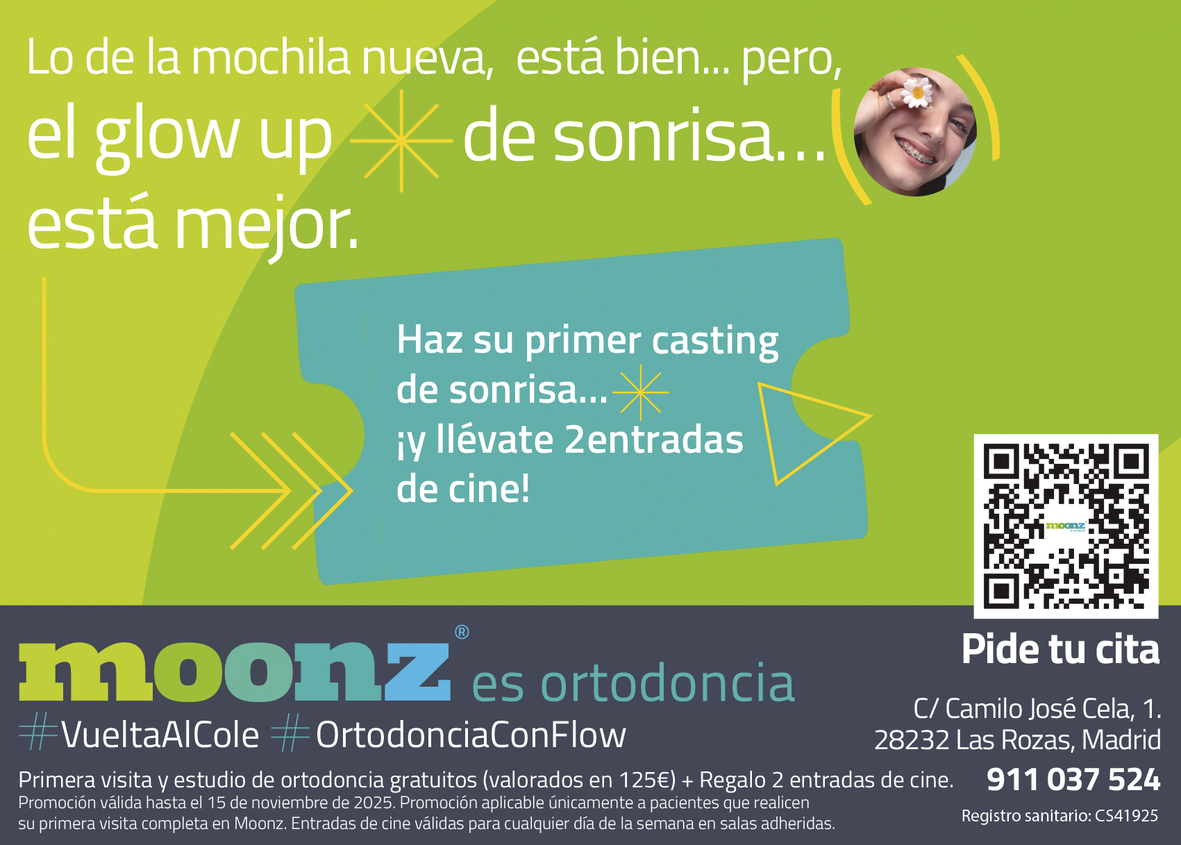 Estrenar mochila está bien, pero mucho mejor está estrenar sonrisa en el inicio del curso escolar. Es lo que te propone Moonz, clínica dental especializada en ortodoncia y odontopediatría ubicada en Torrelodones. Te ofrecen hacer el primer estudio de ortodoncia gratis y, ademas, con la primera visita te regalan dos entradas de cine.