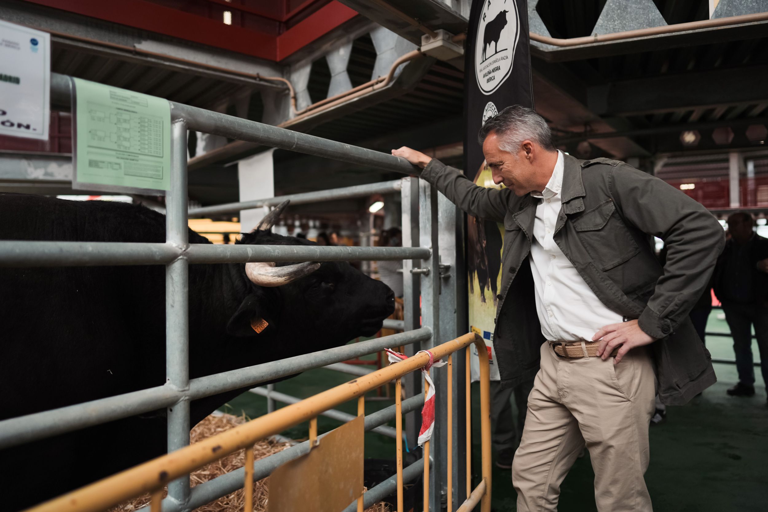 El consejero de Medio Ambiente, Agricultura e Interior, Carlos Novillo, ha visitado este viernes la Feria acompañado por los representantes de las asociaciones de criadores de razas autóctonas. La exposición reúne 133 animales -92 bovinos, 18 ovinos y 23 caprinos-, de 29 ganaderos. Además de estos, hay 39 vacunos de las castas Avileña-Negra Ibérica, Berrenda en Colorado, Negro y Charolesa que participarán en la puja del domingo.