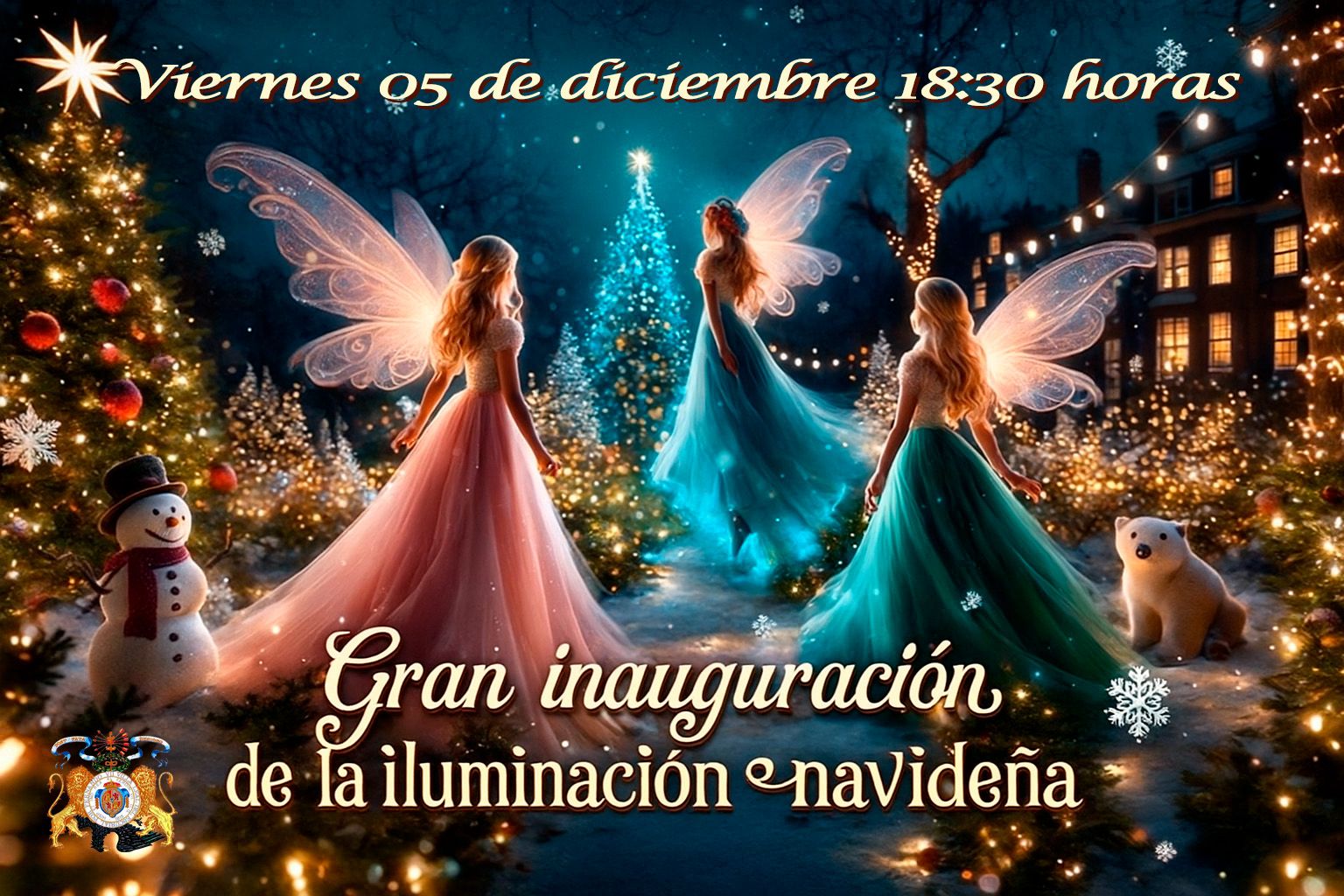 En la Plaza de España se inaugurará el Belén Municipal y se hará entrega de varitas mágicas de luz a todos los niños. A las 18.30 horas, las hadas saldrán del Ayuntamiento en dirección a Casa Miñana, donde dará comienzo la inauguración oficial de la iluminación navideña, con la iluminación de este emblemático escenario y la inauguración de la Feria del Chocolate y Dulces Navideños, la apertura del Jardín Mágico de la Navidad y del Sol Musical de los Osos Polares.