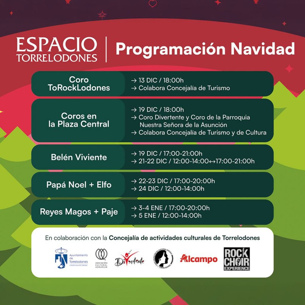 Además, los días 19, 21 y 22 de diciembre podrás contemplar un Belén viviente, y los días 22, 23 y 24 de diciembre, acercarte a ver a Papá Noel, que estará acompañado de su elfo. Los Reyes Magos visitarán Espacio Torrelodones los días 3, 4 y 5 de enero.