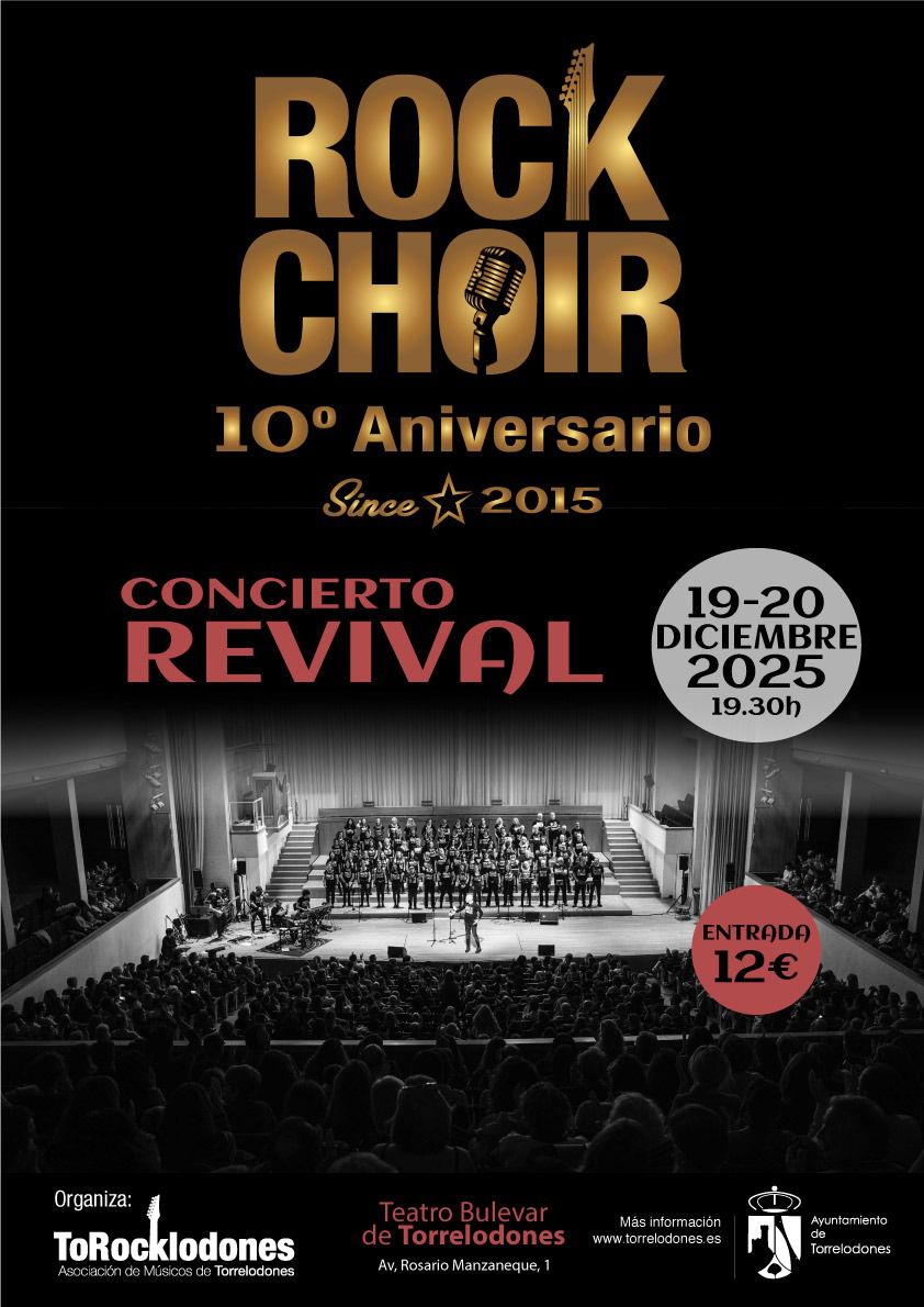 El Concierto Revival de Rock Choir tendrá lugar los días 19 y 20 de diciembre en el Teatro Bulevar a partir de las 19.30 horas. Las entradas cuestan 12 euros.