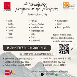 Los interesados podrán realizar su solicitud a partir del próximo miércoles y hasta el 20 de enero de 2026. Las plazas en los talleres pueden solicitarse en cualquiera de los municipios en los que se imparten los talleres. Es decir, Guadarrama, Cercedilla, Collado Mediano, Becerril de la Sierra, Los Molinos y Navacerrada.