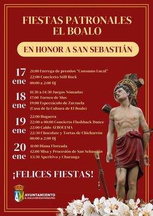 El Ayuntamiento de El Boalo ha invitado a los vecinos a participar en las celebraciones en honor a San Sebastián, que se celebran desde el sábado 17 al martes 20 de enero con una programación en la que destacan las actuaciones musicales, los eventos tradicionales y actividades para todas las edades.