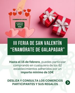 El Ayuntamiento de Galapagar, a través de la Concejalía de Comercio, ha puesto en marcha desde hoy, 29 de enero, la III Feria de San Valentín ‘Enamórate de Galapagar’, una iniciativa que se desarrollará hasta el próximo 15 de febrero con el objetivo de fomentar el comercio local y celebrar el Día de los Enamorados apoyando a los negocios del municipio.
