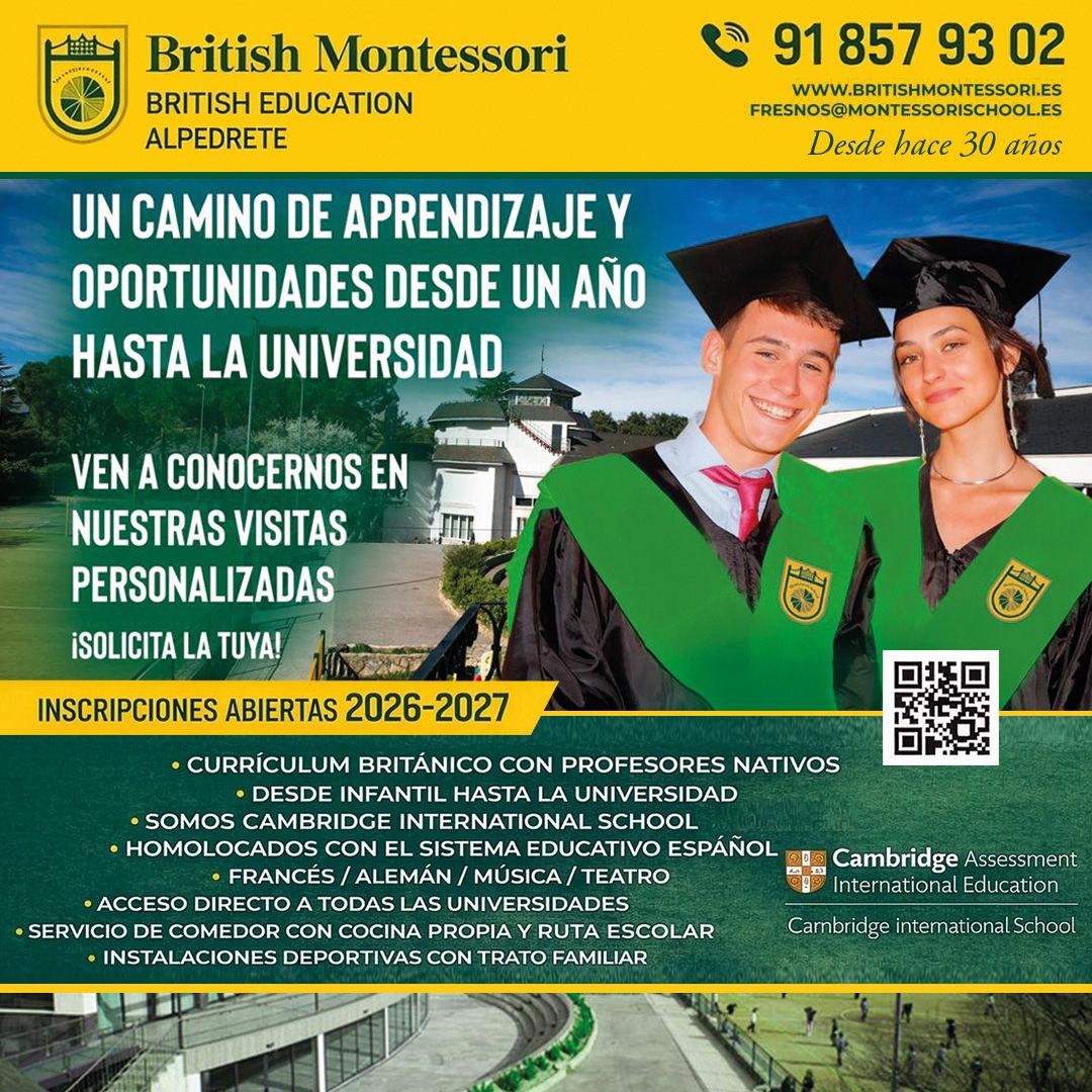 El Colegio British Montessori, con sedes en Alpedrete y Collado Villalba, ofrece educación desde Infantil hasta Bachillerato siguiendo el programa británico, integrando lengua y cultura española. Los alumnos obtienen titulaciones IGCSE y ‘A’ level, reconocidas internacionalmente. La metodología Montessori se aplica en todas las etapas, fomentando habilidades prácticas y valores personales.