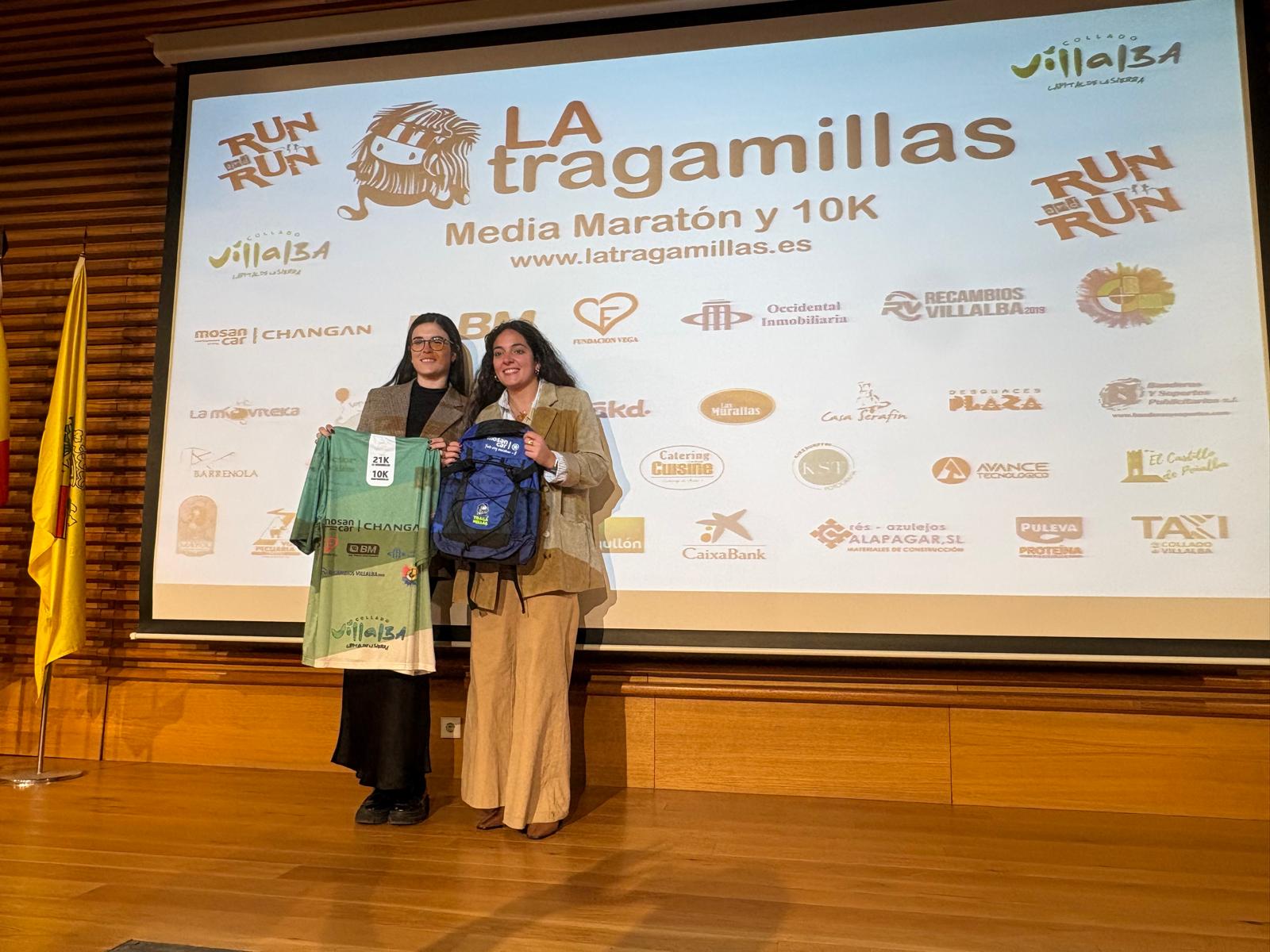 Durante la presentación de la Tragamillas se aprovechó para entregar un cheque con parte de la recaudación de la San Silvestre villalbina a la Asociación para la Esclerosis Múltiple de Collado Villalba, así como un reconocimiento a los voluntarios por parte de la organización, por su labor como piedra angular de la carrera.