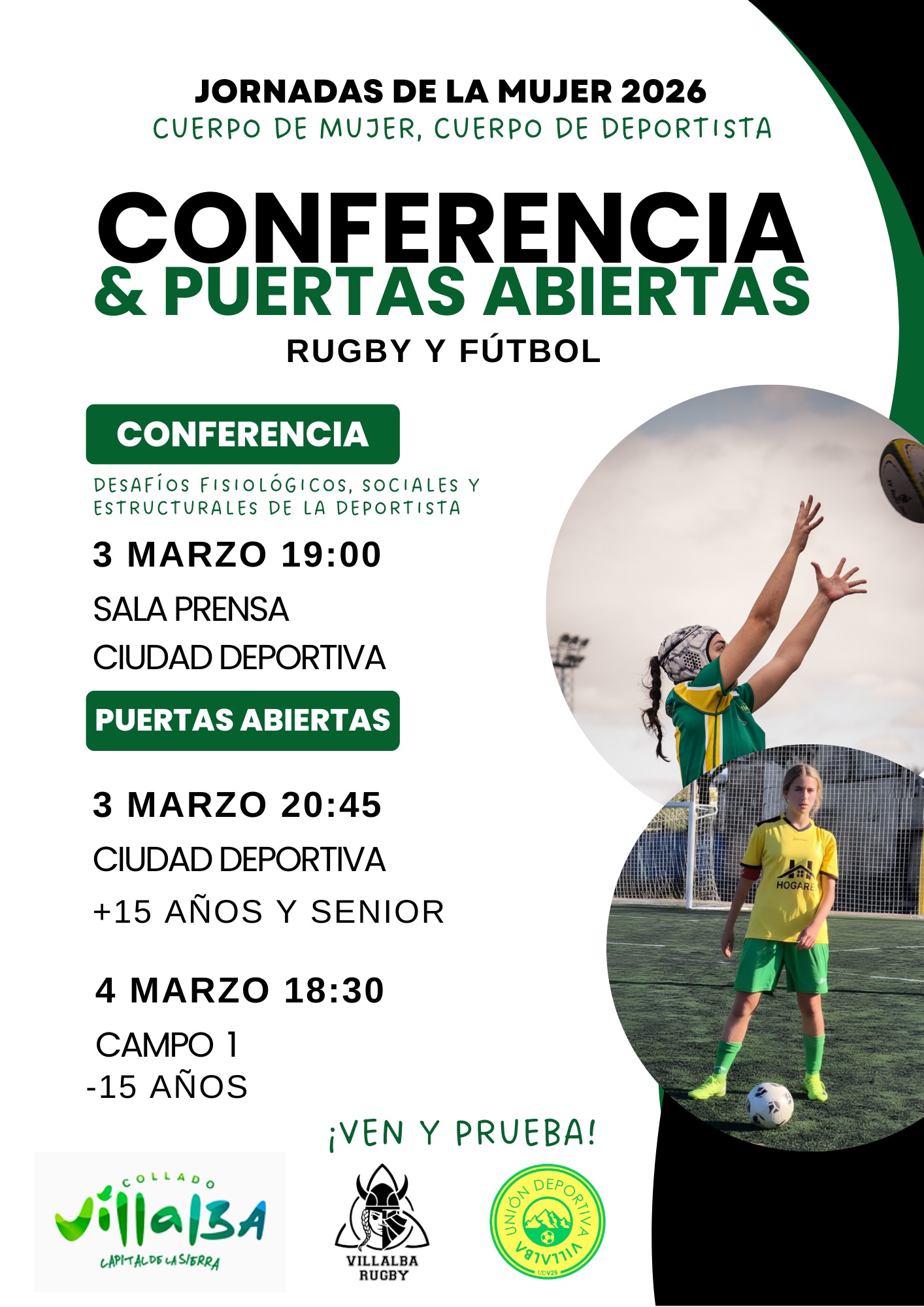 Bajo el lema 'Cuerpo de mujer, Cuerpo de deportista', la U.D. Villalba y el Club de Rugby Collado Villalba han presentado una iniciativa conjunta para conmemorar la Semana de la Mujer este 2026