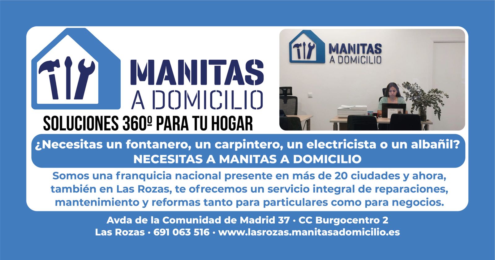Están en el CC Burgocentro 2 de Las Rozas, local 4. Más información en www.lasrozas.manitasadomicilio.es.