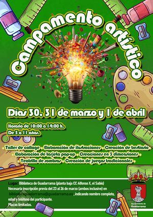 La Biblioteca Municipal Arcipreste de Hita de Guadarrama acogerá un campamento artístico durante los días no festivos de Semana Santa, con el objetivo de que los más pequeños disfruten de sus vacaciones a través de actividades creativas.