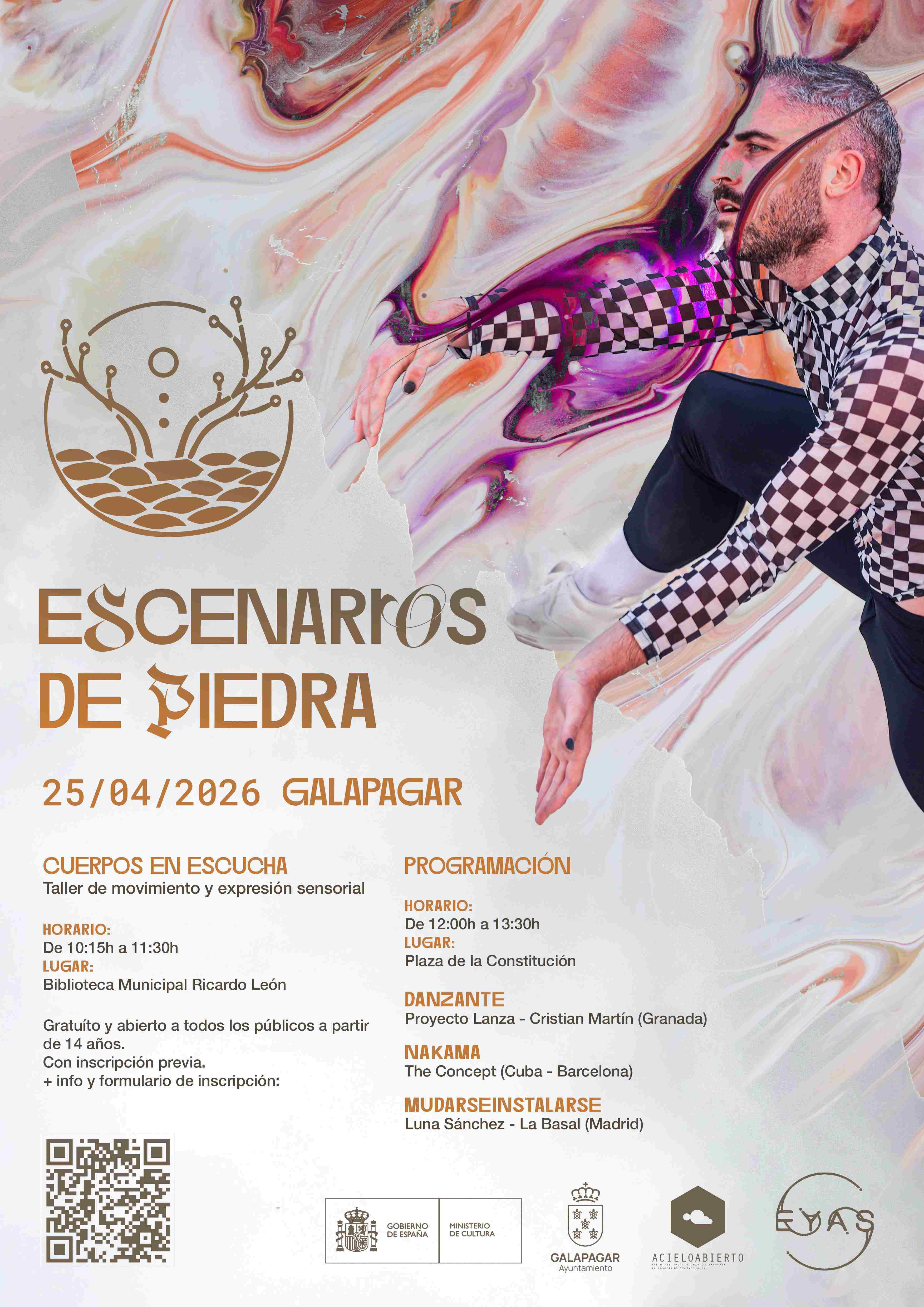 Con motivo de la Feria del Libro, el sábado 25 de abril tendrá lugar en Galapagar el Festival Itinerante de Danza en la calle 'Escenarios de Piedra', que se desarrollará en dos espacios: la Biblioteca Municipal Ricardo León y la Plaza de la Constitución.