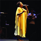 Con su voz aterciopelada, Susana Baca es una de las cantantes más famosas en su país de origen, Perú, y su inclinación por los cantos populares de su tierra y la música traída por los esclavos africanos le han convertido en toda una embajadora de la música afroperuana. Su actuación, "El alma del Perú negro" tiene su origen en la fusión de la cultura del África negra y la de los indios del altiplano en este país latino. Descalza sobre el escenario y vestida de blanco, Susana se entregó al público en un recital íntimo con canciones de tintes indígenas, versiones de cantantes sudamericanos como Violeta Parra, y muchas letras populares que hablaban de amor. Los músicos, acompañando con un contrabajo, una guitarra eléctrica y una batería, estuvieron a la altura en todo momento, y mención especial merece la percusión de Juan Omar, quien logró sacar ritmos de los más variados objetos, como una mandíbula, una tinaja de cerámica o una caja.